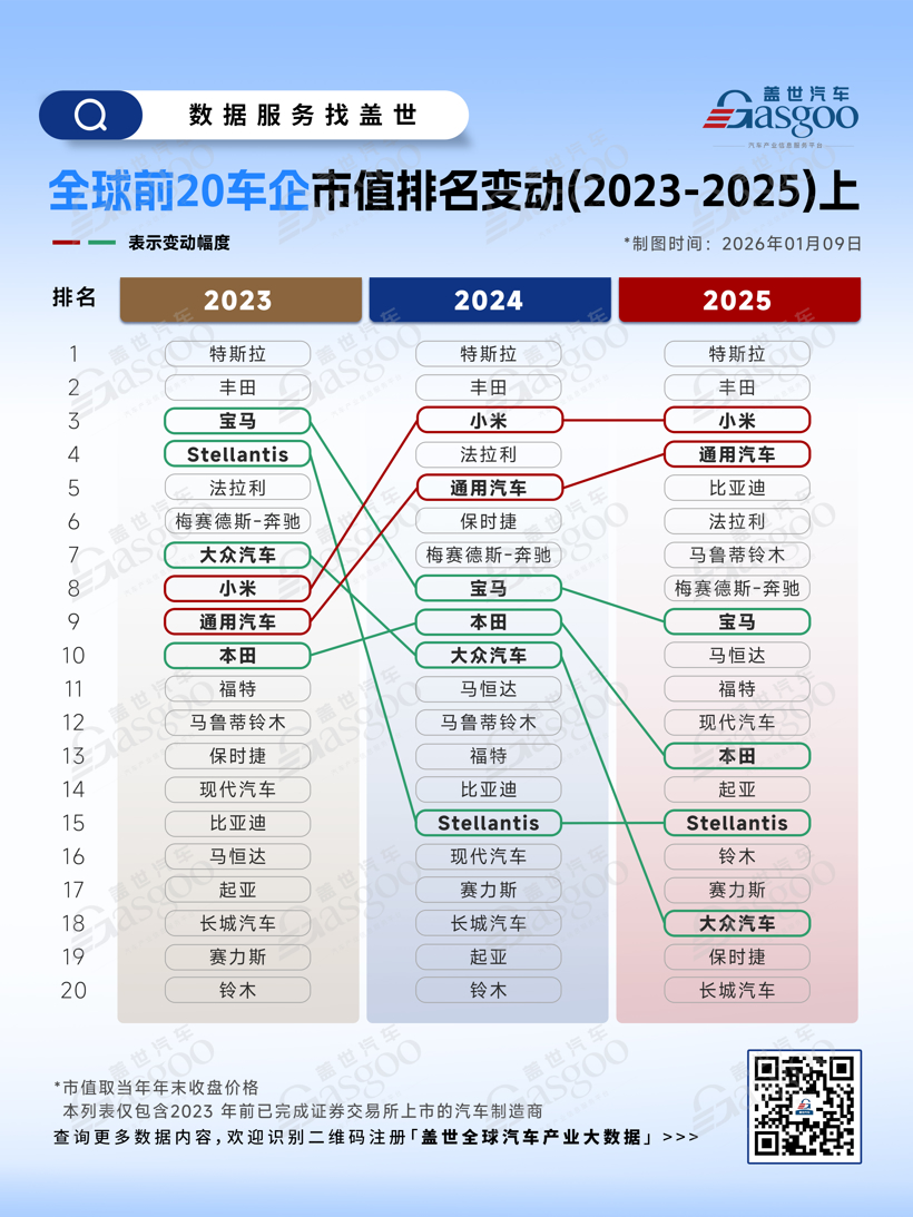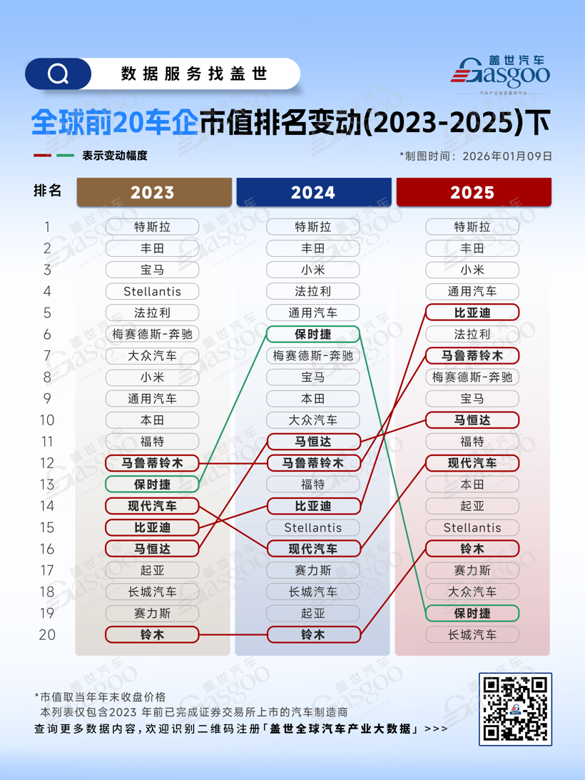 六张图看懂2023-2025年全球车企市值排位变动
