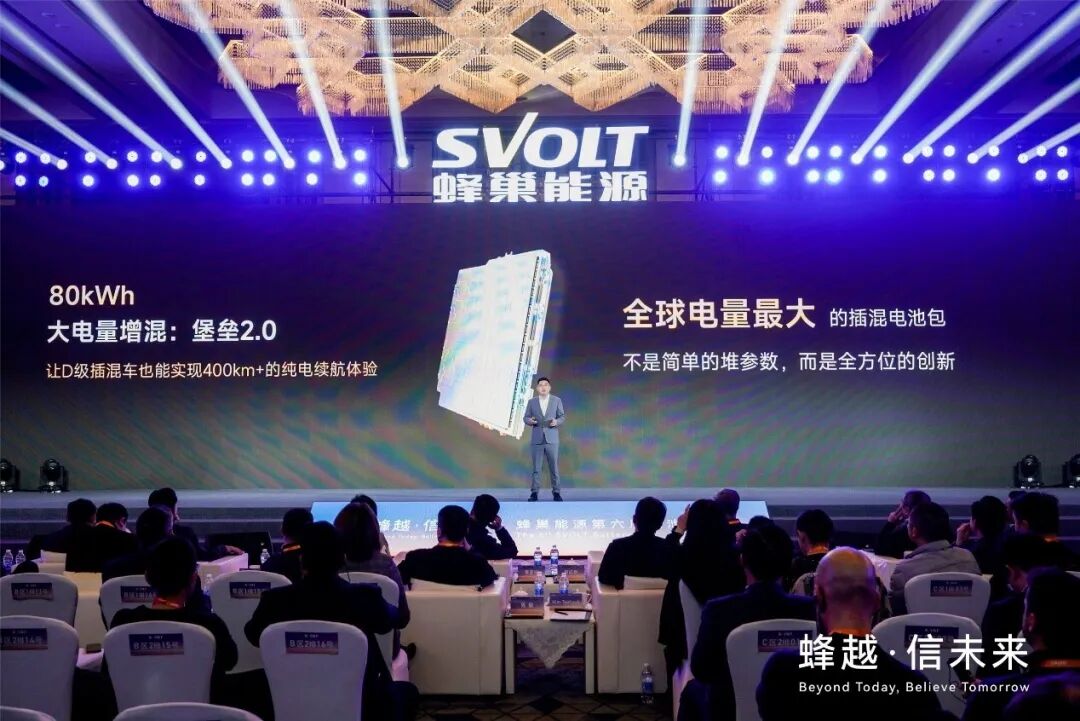 1月13日,蜂巢能源在第六届“电池日”上宣布推出全球电量最大的插电式混合动力电池包“堡垒2.0”,容量达到80kWh,刷新行业纪录。该产品计划2026年3月量产,首批将适配D级插混车型,已获得多家主机厂定点。
