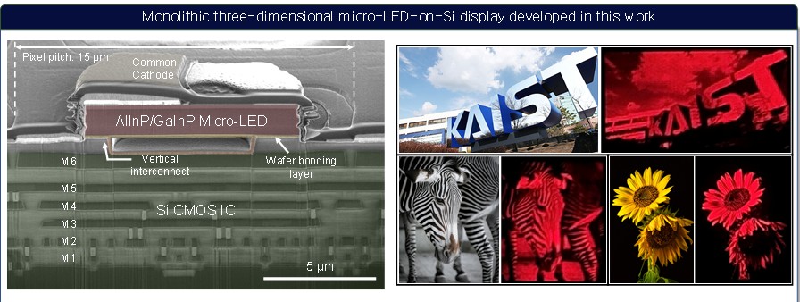 该研究团队由KAIST电气工程学院Sanghyeon Kim教授领导,联合仁荷大学(Inha University)Dae-Myeong Geum教授、化合物半导体制造商QSI以及微显示器/SoC设计公司Raontech组成。研究人员共同开发出一种红色微型LED显示技术,该技术在显著降低功耗的同时,实现了超高分辨率。