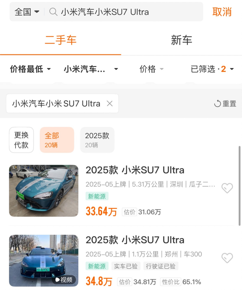 不仅如此,相对而言,宝马M3\M4等产品在该平台的保值率,也显著胜过小米SU7 Ultra,进一步加速小米SU7 Ultra新车销量下滑的同时,也佐证了高性能车玩家对于小米SU7 Ultra更多是新鲜感,而非高认可度带来。热度终会散去,小米SU7 Ultra的销量只不过回到了原本该有的样子。