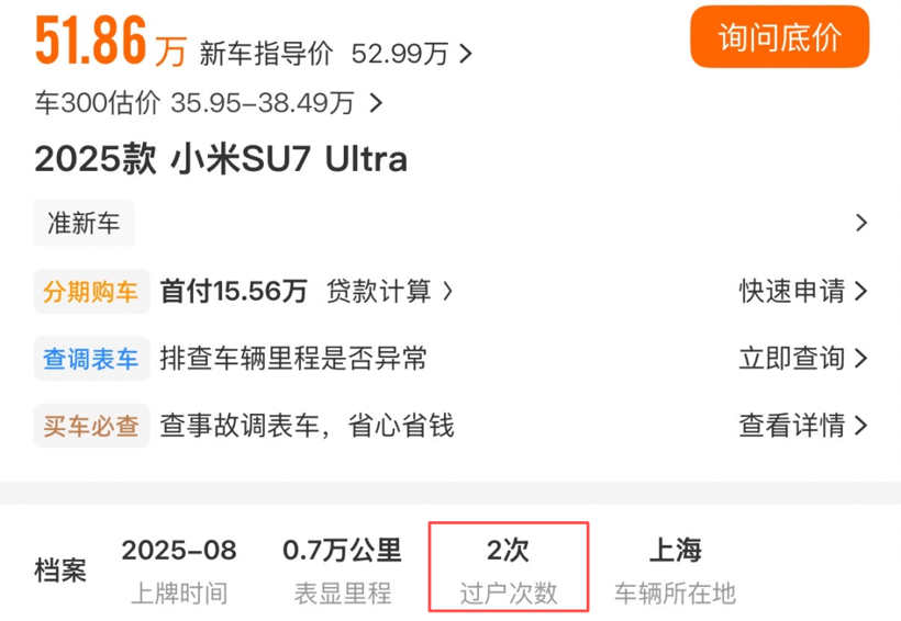 而二手车平台上的数据也佐证了这一点,单是上海,二手车源便有近十条,更有甚者为了出手已经将行驶数千公里的准新车价格压到了40万元以内,而全国车源更是高达二十余条,更有部分车型的过户次即将来到第3次,无论是较高的易手率,还是较多的二手车源,对于上市不足一年销量仅1.5万辆的性能轿车而言,数据不算正常。