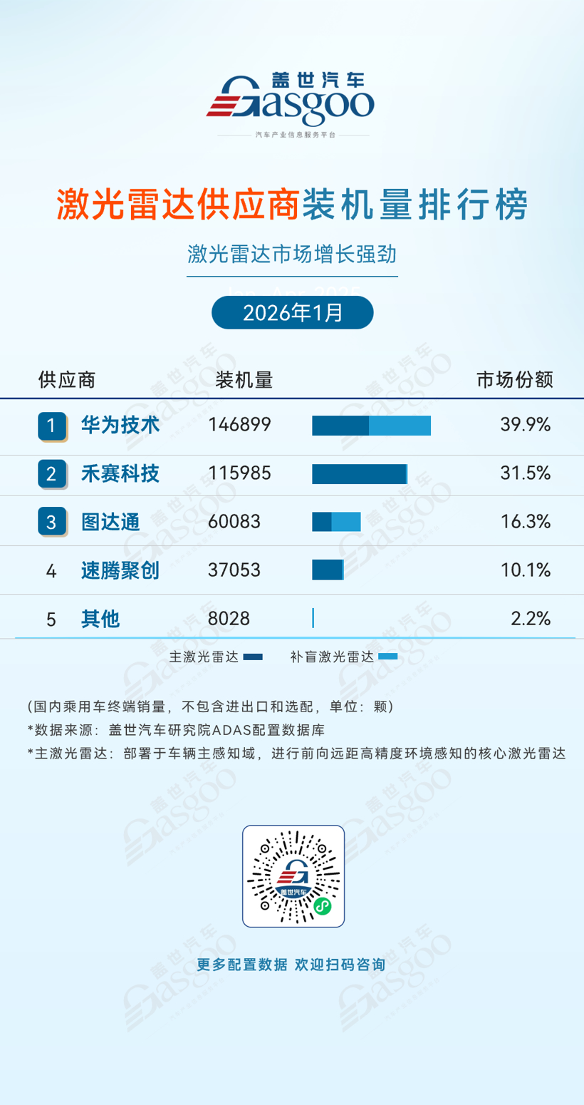 2026年1月ADAS供应商装机量排行榜:国产厂商市占率持续上升丨盖世汽车研究院