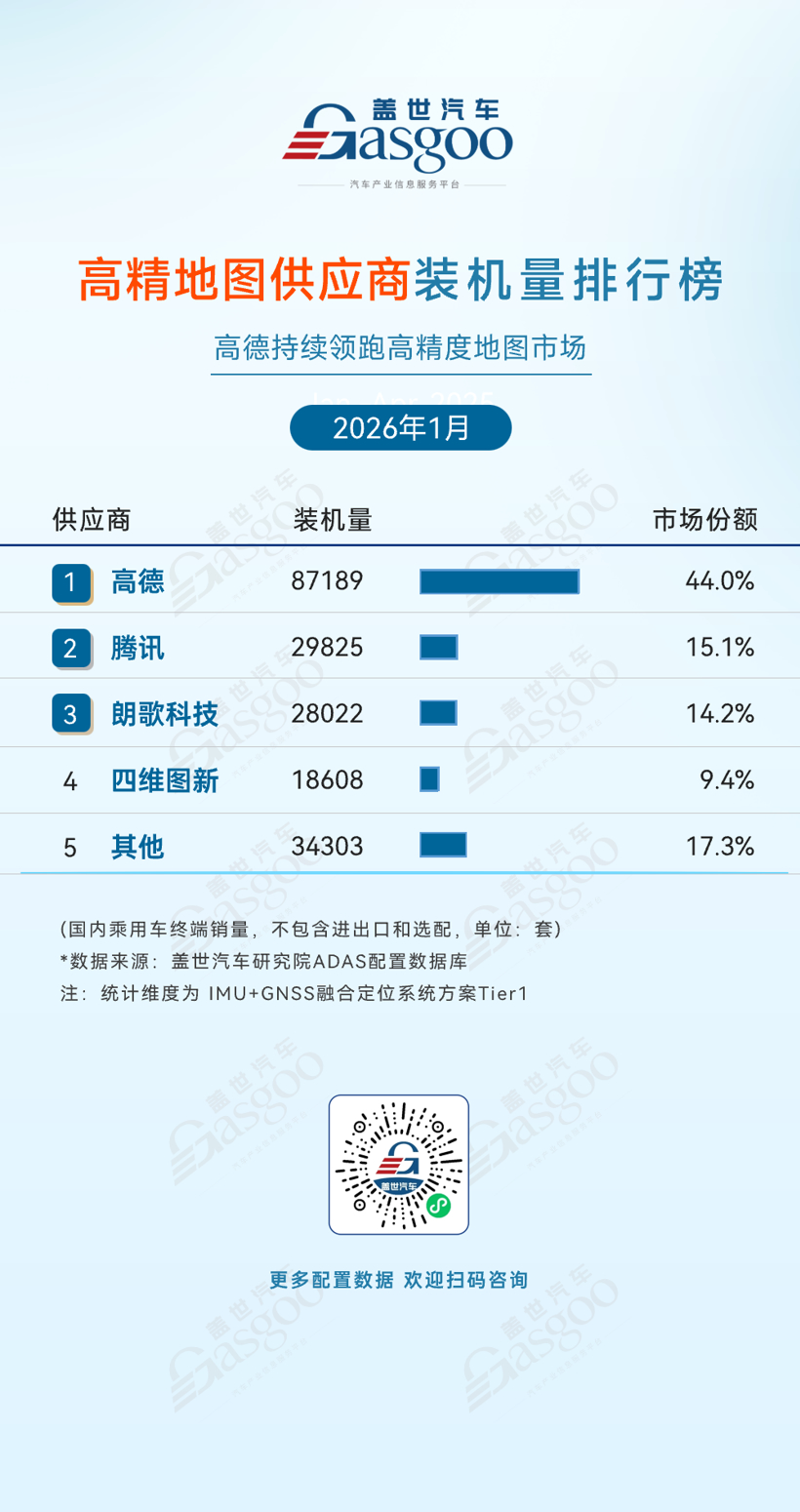 高德,2026年1月装机量87,189套,市场份额44.0%。