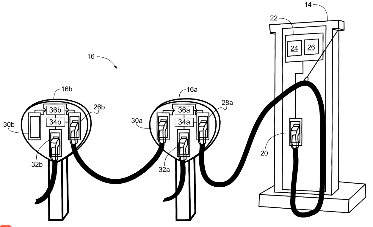 根据通用汽车的专利描述,该系统包括一个带充电端口的直流(DC)充电器以及一系列低功耗接入点(LPAP)。每个LPAP具有多个端口,包括两个“菊花链”端口和一个充电端口。LPAP串联连接到主直流充电器,从而使充电器的功率能够通过LPAP链进行分配。每个LPAP随后都能为另一辆电动汽车供电。该系统可用于同时为多辆电动汽车充电,每辆电动汽车连接到不同的LPAP。