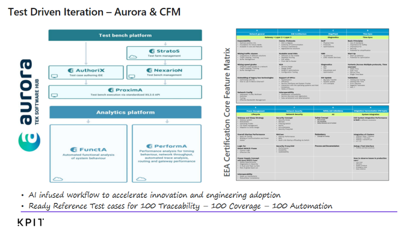 在此坚实的基础上,KPIT进一步注入了自身在二十余年工程服务中积累的独特知识产权,构建了名为“Aurora”的测试调度与管理系统。该系统深度融合了KPIT在为全球众多主机厂提供高级辅助驾驶、智能座舱及三电系统等服务过程中所沉淀的海量电子电气架构认证用例库,全面覆盖了上电时序、功能安全、网络安全等关键验证领域,并承载了公司推动测试向“百分百可追溯、百分百覆盖、百分百自动化”愿景迈进的内部目标。