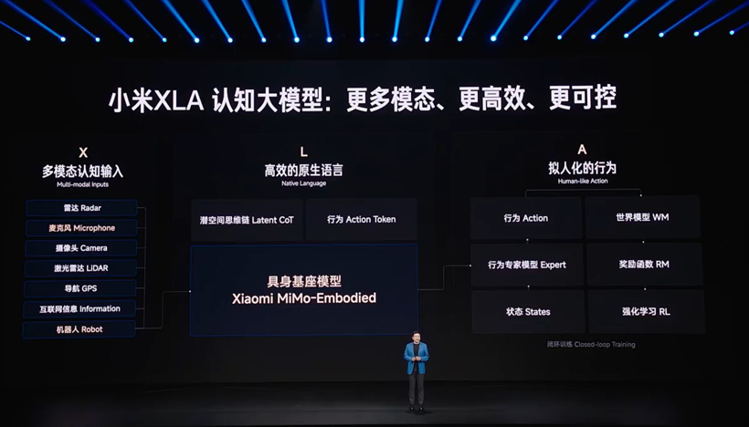 以辅助驾驶为例,新一代小米SU7的XLA模型,基于全面搭载自研的MIMO-embodied基座模型打造,支持多模态感知和推理,实现车位到车位领航、复杂场景绕行、语音控车等功能,可提前识别减速带、湿滑路面等,车轮打滑量降低40%。
