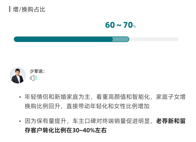 2年时间,小米汽车学到的不是设计、营销层面的“捷径”,而是对于造车的技术门槛有了根本的更清楚的认知和理解。新一代小米SU7交出的不仅是一份更成熟的答卷,更多在友商纷纷琢磨小米汽车的营销打法、模仿PPT模板时,小米明白了造车必须靠自己,核心技术必须握于自己手中的根本道理,也在努力实现。车Fans的调研周报也佐证了这一点,新一代小米SU7的订单中,增/换购比例超过6成。换句话来说,多数用户并非“小白”,而是对用车有着一定了解的“老手”,他们的认可,恰恰是对新一代小米SU7成熟度的高度认可。