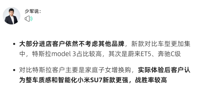 (文中部分图片截取自公众号——车Fans《新款小米SU7 新车上市一线销售周报》)