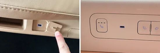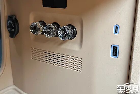 在车内USB接口方面,评测车前排配有1个USB Type-C接口和1个USB Type-A接口,第二排和第三排分别配有2个USB Type-C接口。我们对USB接口进行了测试,USB Type-A接口的测试成绩在5V、1.612A、8.084W左右;USB Type-C接口的测试成绩均在8.098V、1.181A、9.531W左右。此外,评测车还配备2个12V电源。