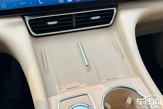评测车配备2个手机无线充电板,位置设计合理,驾驶员拿放手机方便。充电功率均为50W,并提供通风散热口和语音开启/关闭功能,实用性表现出色。