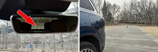 后方视野测试中,依旧将桩桶固定摆放,随后移动车辆直至可以观察到桩桶上沿为止。实测后方视野所测得的距离为14.852m,与测试过的同级别车型相比同样处于中游水平。
