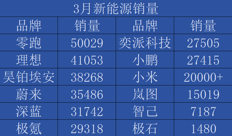 3月新能源销量:蔚来大反弹,理想纯电已成,小米进入调整期