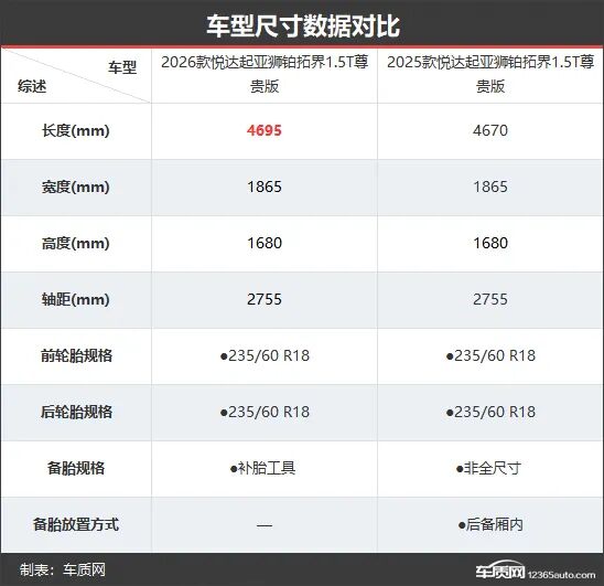 新老款车型的车身侧面并无明显变化,仅在细节处进行了微调,以此增加视觉新鲜感。轮毂尺寸依旧保持18英寸不变,但造型有所变化,全新的几何钻石切割设计更具运动气息。车身尺寸方面,新款车型仅车身长度增加25mm,达到4695mm,其余尺寸均与老款保持一致。略显遗憾的是,新款车型取消了老款配备的非全尺寸备胎,改为仅提供补胎工具。