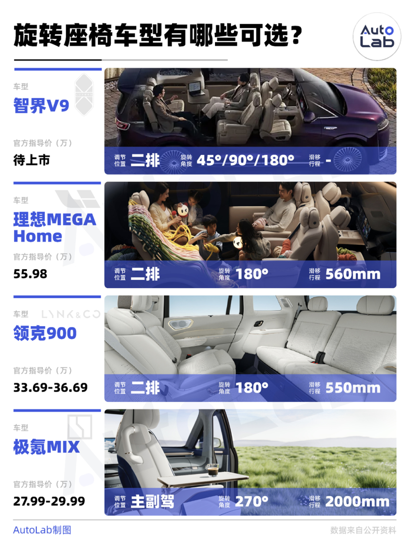 目前来看,原厂搭载旋转座椅的主要有以下四款。