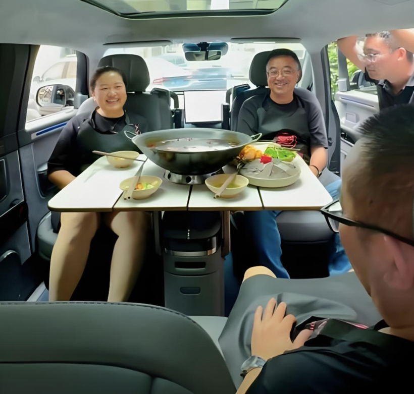 可以前后翻转的前排座椅、搭配上可以前后滑移,安装桌板等配件的中岛,也就有了当年宣发时在车内吃火锅的“名场面”。