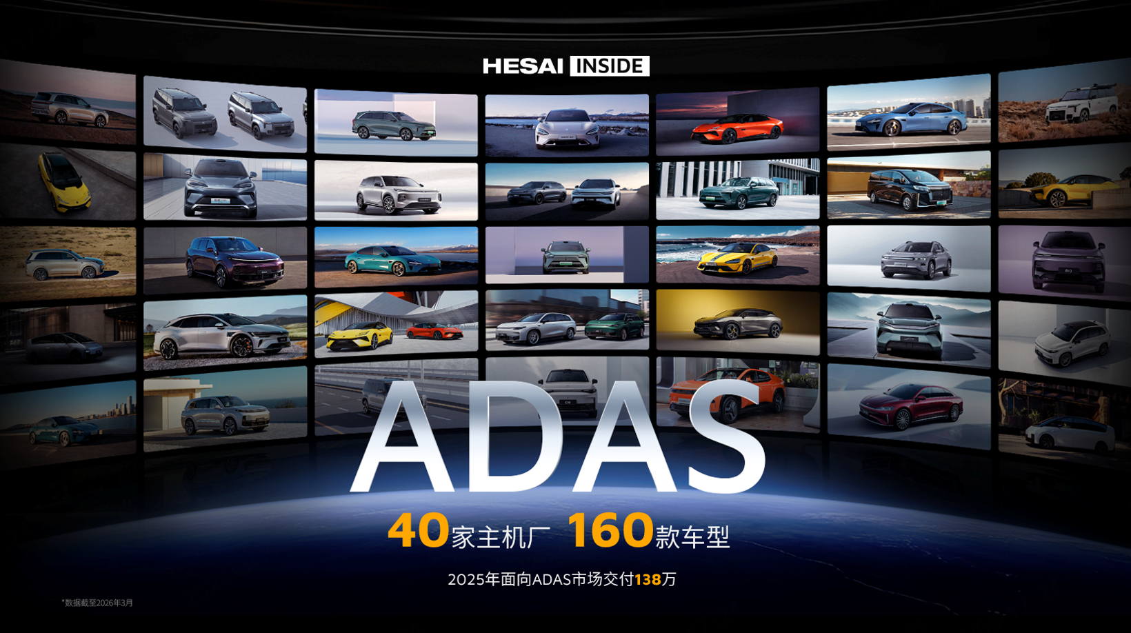 市场地位的稳固,源于头部车企的认可。禾赛深度赋能理想、小米、零跑、比亚迪、极氪、长城汽车等品牌热销车型。其中,小米 YU7 和近期上市的新 SU7 全系标配禾赛激光雷达,上市即爆款。截至目前,禾赛已获 40 家汽车品牌超过 160 款车型的量产定点,覆盖中国销量前十的全部汽车品牌,并已斩获前两大 ADAS 客户 2026 年全系车型定点合作。这不仅体现了禾赛在全栈自研芯片化技术、高可靠产品性能及规模化量产能力上的综合领先优势,更标志着禾赛的技术实力与产品竞争力已获头部车企集体认可,成为智能汽车的标配之选。