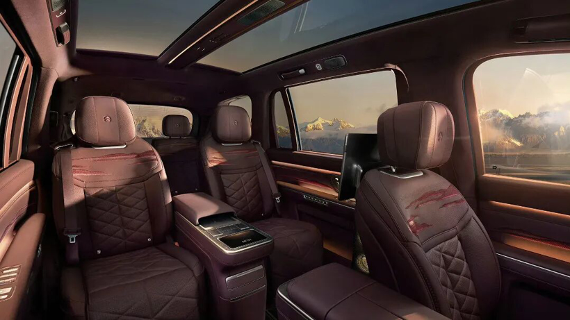 配合全球顶奢材质与严苛工艺,将完整的“山水意境”巧妙融入座舱,勾勒出独特的东方意境,打造科技行政旗舰SUV座舱的极致尊崇感。