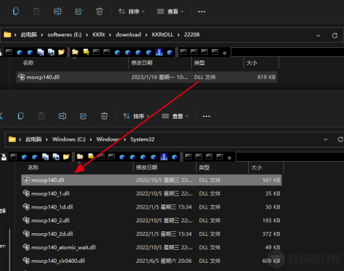 点击打开文件,即可查看已经下载的cnbbr285.dll文件。然后打开系统目录,将文件复制到系统目录即可。