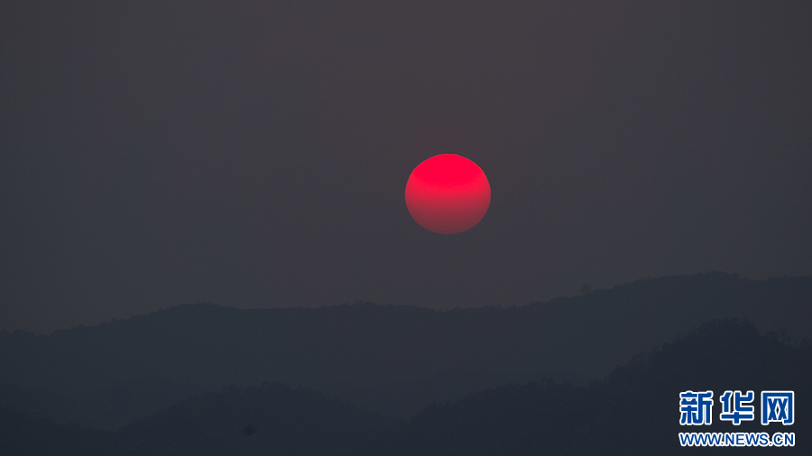 在云南普洱翁基古寨拍摄到的日落(4月1日摄)。新华网 徐华陵 摄